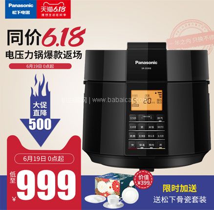 天猫商城松下松厨专卖店售价¥1499,下单立减¥340,可领取¥20优惠券,叠加每满¥300-40跨店满减,再叠加88会员500-50电器券,凑单1件小黄鸭,实付¥890.2包邮到手,赠送价值399元松的下骨瓷餐具套装(送完即止),还可叠加消费券红包,松下高端电压力锅,黑科技无水炖功能、可达2.0个大气压,领到800-120的简直便宜上天了,还支持花呗6期免息,京东自营活动价也要¥999。天猫商城购买地址>>