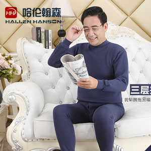 Hallen Hanson 中老年男士三层夹棉保暖内衣套装,3D立体剪裁,穿着舒适,双层棉面料,亲肤透气,夹层是聚酯纤维,轻柔弹力,锁温保暖,有效抵御严寒。