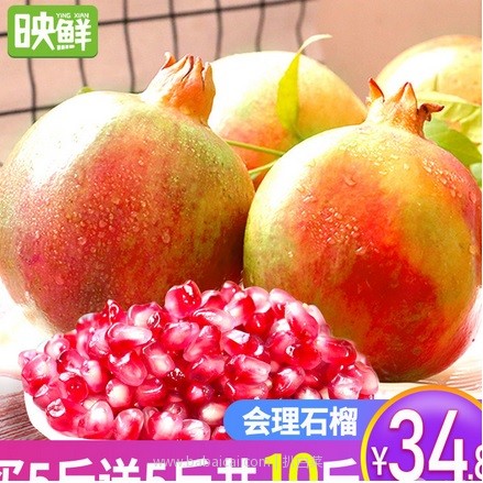 天猫商城映鲜旗舰店买一送一10斤装售价¥27.8,可领取店铺¥3优惠券,实付¥24.8包邮,净果约8.6~9.2斤,新低价,现货现发,坏果包赔。软籽多汁薄皮石榴,不添加催熟剂、保鲜剂,皮薄个大,果肉饱满,色鲜多汁~天猫商城购买地址>>