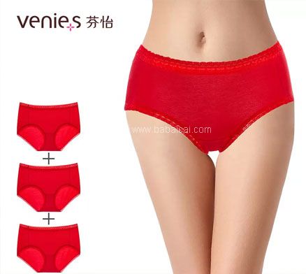 这款Venies 芬怡 中高腰提臀本命年棉质蕾丝内裤3条装,92%长绒棉+8%弹性氨纶科学配比,亲肤舒适;中腰棉感蕾丝花边,柔软无刺激,中腰无痕包臀不夹臀,穿着更舒适。