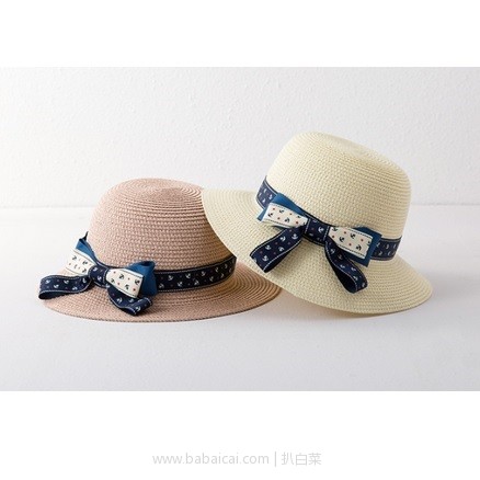 茵曼 遮阳帽渔夫帽 ,纸草混纺材质面料,其纤维细致光滑而有韧性,经久耐用,佩戴舒适透气,精致编织工艺,纹理均匀美观;运动三种不同的丝带组合设计的蝴蝶结,印打造减龄的学院风,清新文艺。可随意折叠不易变形,方便携带。