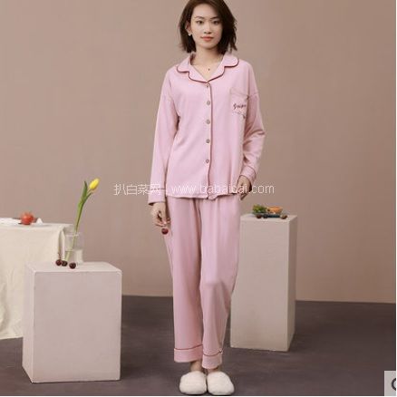 INMAN 茵曼 女式秋冬长袖家居服套装,优质亲肤棉材质加入聚酯纤维,比常规棉更具有弹性,轻柔软滑,不易变形有,适合各种体型;环保健康的A类染料,色泽鲜丽,安全无污染0刺激,呵护秋冬敏感肌肤。