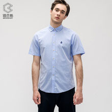 鲁泰佰杰斯 夏季纯棉条纹时尚商务短袖衬衫,货号: P01A14-14816,精选新疆天然长绒棉,磨毛处理,亲肤透气,方领设计,修身合体,挺阔有型,免烫易打理,持久有型。