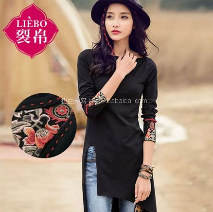 裂帛是喜欢森女风的美眉比较中意的一个品牌,每件衣服都有裂帛风格的特别设计,目前这款长袖T恤,天猫商城售价¥99.8,可使用店铺¥30优惠券,实付¥69.8包邮,2色可选,96%棉,亲肤细腻,肩部镂空,精巧设计,倍增女人味;民族刺绣,中国风十足。天猫商城购买地址>>