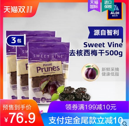 天猫国际ALDI海外旗舰店去核西梅干500g*3袋,双十一预售价¥86.9,需使用10元订金下单可立减¥10,还可使用店铺¥10优惠券,双十一当天实付¥66.9包邮,折合¥22/斤的进口无核西梅干,比国产的都便宜,好吃不贵。天猫商城购买地址>> | 双11预售主场及每天3次超级现金红包地址>>| 天猫更多特价推荐看这里>>