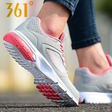 这款 361° 女士夏季网面气轻便跑步鞋,采用皮革搭配网面材质鞋面,循环透气,保持足部干爽,后跟气垫设计,双排线加固,弹力缓震,有效保护。细腻纹路搭配橡胶贴片大底,防滑耐磨。