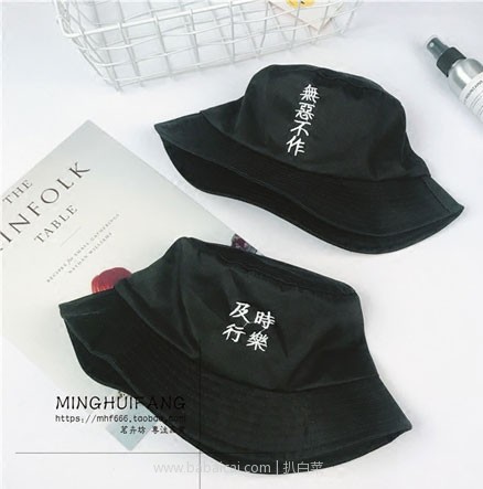 日版可折叠刺绣渔夫盆帽,采用精选棉面料,舒适透气,可折叠设计,潮流文字装饰,休闲百搭,防紫外线,出游时尚。