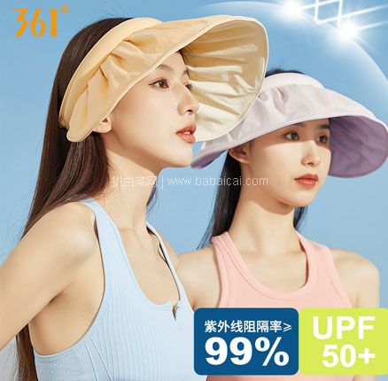 天猫商城361度浪泳专卖店聚划算团购价¥45.9,领取¥16优惠券,实付¥29.9包邮,多色可选,可以折起来变身发箍,相比许多品牌的空顶贝壳帽,性价比相当高了,轻量化99g,紫外线防护系数UPF 50+,有效阻隔> 99%紫外线,加长帽檐全脸防晒防紫外线 。天猫商城购买地址>>