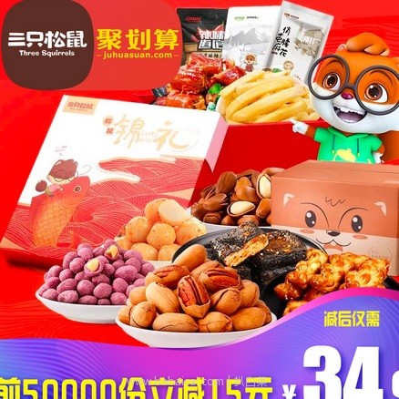 天猫商城三只松鼠旗舰店目前这款零食大礼包售价¥59.9,下单立减¥20元,还可以叠加¥5优惠券,券后实付¥34.9包邮,精选网红零食,多款礼包可选,满足不同吃货的口味。100W+评价,4.8分好评,天猫商城购买地址>>