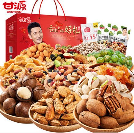 百草味 坚果零食大礼包,A款净含量1612g,B款1380g,来自百草味旗舰店的坚果组合大礼包,年味礼盒,佳节必备,小鲜肉杨洋代言,精挑细选都是人气好货,颗颗坚果,饱含心意,送亲友最佳选择。
