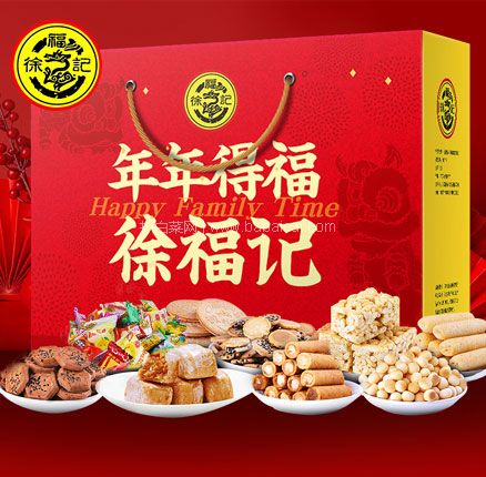 徐福记 年年得福 酥心糖什锦糖零食大礼包,内含:酥心糖228g、沙琪玛320g、什锦糖228g、小丸煎饼、岩板烧、京屋果子、米格玛、卷心酥、法式薄饼,都是徐福记的人气零食。