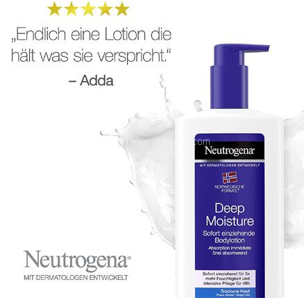 Neutrogena 露得清 Norwegische Formel 深层保湿身体乳液,不油腻的乳霜质地拥有良好的延展性,可轻松地涂抹于肌肤上并可被快速吸收。帮助…… 阅读全文