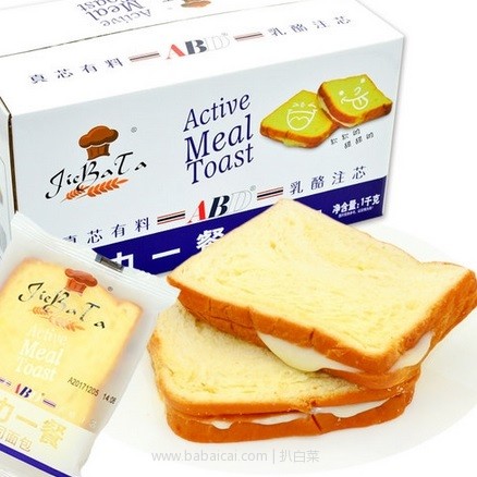 月销21W+! 超级好吃!天猫商城ABD食品旗舰店这款乳酪夹心吐司面包1000g,活动售价¥28.8,可使用¥5优惠券,实付新低¥23.8包邮。天猫商城购买地址>>