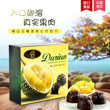 ChocolateBaby 猫山王榴莲夹心黑巧克力,马来西亚进口,精选优质原料,每一颗猫山王巧克力中,都采用了优质的新鲜猫山王榴莲果实,含正正的榴莲果肉;入口瞬间巧克力的香气布满整个口腔,轻轻咬破外皮,浓郁的榴莲果味从中溢出。