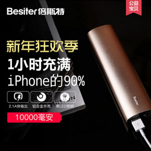 天猫商城besiter旗舰店售价¥59.9,还可以叠加¥10优惠券,券后实付¥49.9包邮到手,10000毫安大容量,小巧又便携,2色可选,带飞利浦LED灯珠照明,搭载智能识别IC芯片,兼容市面98%以上手机和平板。 天猫商城购买地址>>