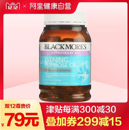 天猫国际BLACKMORES海外旗舰店 这款月见草精华,0点双十二售价¥79,可领取¥20元优惠券(券单领),实付59元包邮包税,低于双十一,旗舰店出品也保真。天猫国际购买地址>>