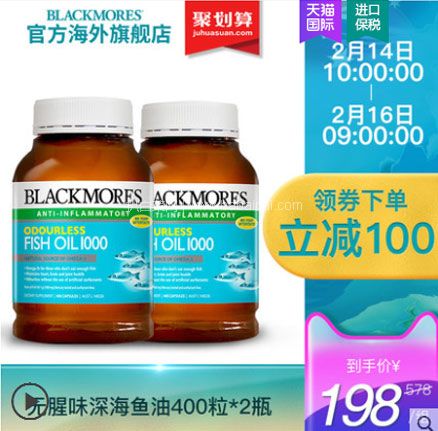好价,软化血管,降三高!BLACKMORES 澳佳宝无腥味深海鱼油胶囊1000mg400粒/瓶【 补充日常Omega-3】现考拉海购限时特价¥111包邮包税,很合适。考拉海购购买地址>>