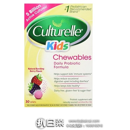 亚马逊海外购:Culturelle Kids 儿童益生菌 咀嚼颗粒 浆果味30粒 现¥83.34,凑单免费直邮,含税到手仅¥93 历史新低,很久没降价了,每户限6盒,速撸!50包粉末款到手¥145也是新低价!