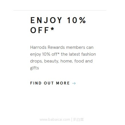 Harrods官网全场额外9折目前已经开始,截止到到2019年1月1日上午,想买趁早。额外9折无需折扣码,结算自动减去,限Reward Card会员,新用户可以注册会员>>,一定要勾选Enrol for a new rewards card!