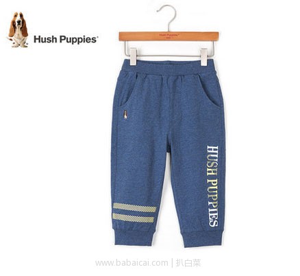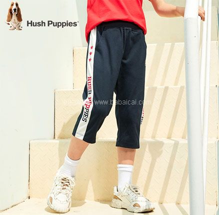 Hush Puppies 暇步士 2018夏装男童中大童时尚七分裤,全棉材质,触感柔软,吸汗透气;加宽设计裤头,比传统皮筋头更舒适,不勒肚子;侧边撞色字母LOGO竖排装饰裤身,潮流时尚;宽边罗纹收口裤脚,利落有型。