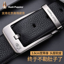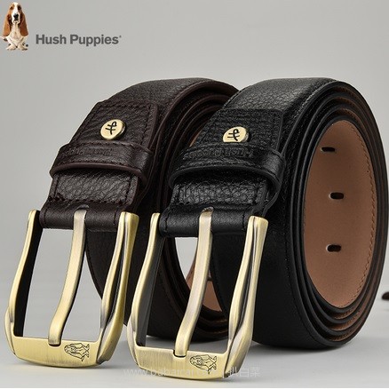 Hush Puppies 暇步士 男士针扣双面头层牛皮皮带,精选优质双面头层牛皮,纹理清晰且质感细腻,3.8CM带宽,弯腰不咯腹部,高密度合金卡头,卡扣设计,咬合紧密,无需打孔,可随意剪裁上,卡扣上品牌图案LOGO,很显档次。