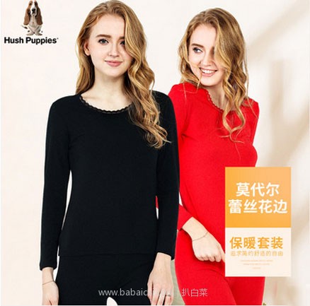 Hush Puppies 暇步士 女士家居服套装,精选60%优质精梳棉+40%氨纶面料,手感柔和细腻,做工精良,简单的圆领,时尚简洁大方;弹力腰头,松紧适宜,有效收腹腰身。