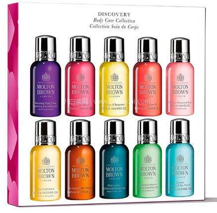 在英国只要提到Molton Brown制造,就如贴上了“质量保证”的标签一样,这款MOLTON BROWN REFINED DISCOVERIES BATHING COLLECTION 沐浴露礼盒,包含10种香型各30ml,香型丰富,适合初次尝试,或者外出旅行、出差时携带。