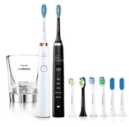 Sonicare 声波技术每分钟运动62000 次,温和有效地清洁,与传统手动牙刷相比,C3高级牙菌斑控制插入式牙刷相比,去除牙菌斑高达10倍,4种清洁程序适用于各种清洁需求。包装内容:2 x DiamondClean 9000 牙刷柄,2 x C3 优质牙菌斑防治牙刷头,1 个充电玻璃