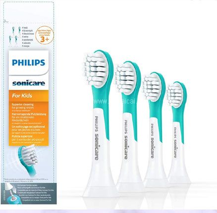 PHILIPS 飞利浦 HX6034/33 儿童刷头4只装,迷你型刷头,更适合孩子使用,超软刷毛,柔和清洁敏感牙齿,与电动牙刷适配,较手动牙刷清除多达50%的牙菌斑。