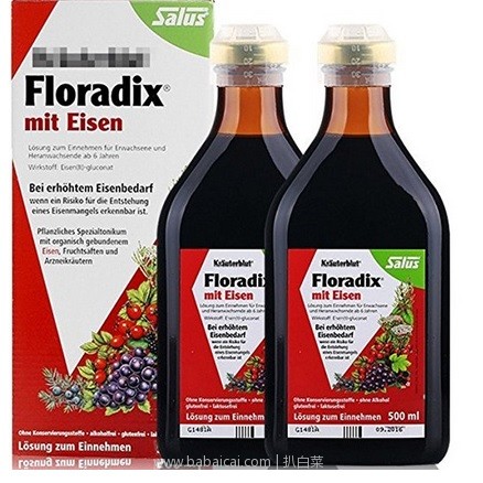 补血圣品,Salus Floradix 铁元,500ML装,为水果浓缩汁混合物:黑加仑果汁,黑莓,梨,樱桃,葡萄,蜂蜜,玫瑰果,香橙,水芙蓉花,苦茴香,当归根等。每一滴均来自来经过欧盟认证的Salus莎露斯有机农场,不添加防腐剂和其它添加剂,富含有机液态铁、维生素C、维生素B1、维生素B2、维…… 阅读全文